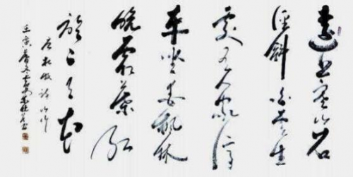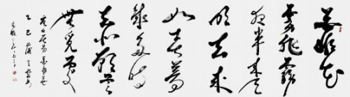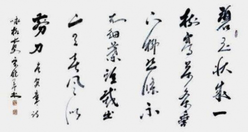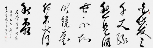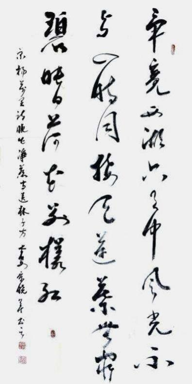 内容:唐李白诗“秋浦歌”,释文:“白发三千丈,缘愁是个长。不 知明镜里,何处得秋霜。”书体,行草,规格 240cmx69cm,创作时 间,2025 年 6 月。