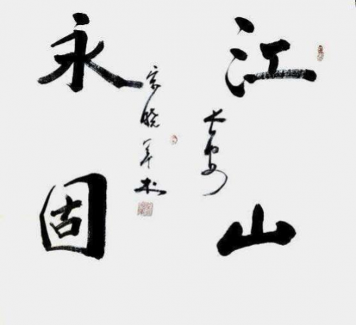 内容“江山永固”创作时间,2023 年 2 月, (斗方),规格,69cmx69cm。