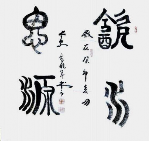 释文:“饮水思源”,书体,篆书,规格:69cmx69cm(斗方),创作时间:2023 年5 月。