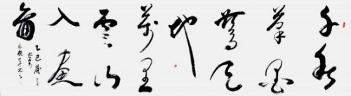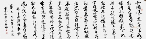 内容:释文,“千秋笔墨惊天地,万里云山入画冬图”书体,行草, 规格 240cmx69cm,创作时间,2025 年 6 月。